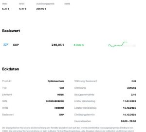 - Optionsschein Call Strike: 200, Auslösung: 16.12.2026